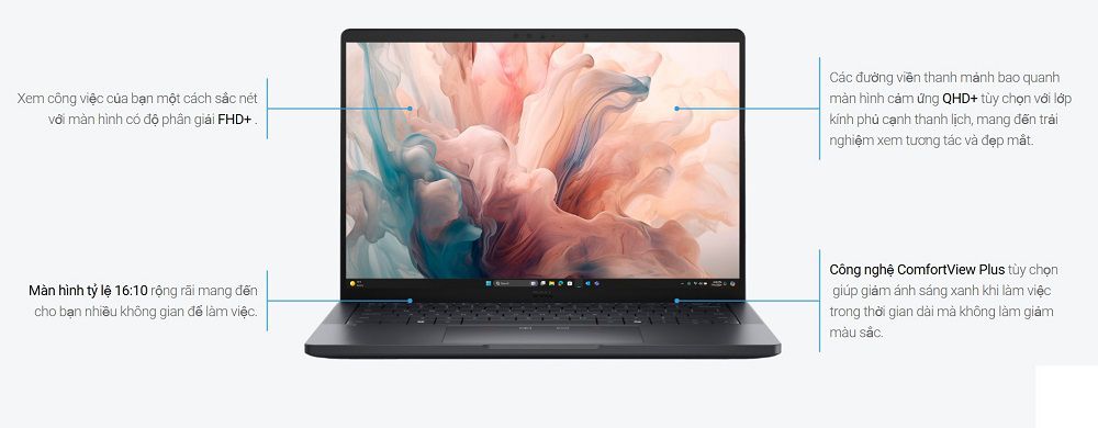 – 13,3 inch, Cảm ứng, Kính Gorilla®, QHD+(2.560 x 1.600), 500 nit, Công suất thấp, 100% sRGB, Chống G, ComfortView+